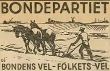The Farmers' Party (Danish: Bondepartiet), initially known as the Free People's Party[1] (Det Frie Folkeparti), was an agrarian[2] political party in Denmark. It was founded in 1934 as the political wing of Landbrugernes Sammenslutning. At the time of the founding of the party, 3 Venstre MPs joined it.[3]