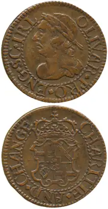Under the Commonwealth of England no farthings were issued by the government, although pattern farthings were produced. Huge quantities of private tokens were issued in this period by small traders or towns to satisfy demand.
