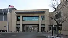 Designed by architecture firm HOK, a complex along the Mississippi River now serves as home to the Minneapolis Fed, which moved there in 1997. The address was set as 90 Hennepin Avenue to match the 9th district designation. It is located on the site of the former Minneapolis Great Northern Depot adjacent to the Hennepin Avenue Bridge and the Pacific sawmill once owned by T. B. Walker and George A. Camp.[5][6]