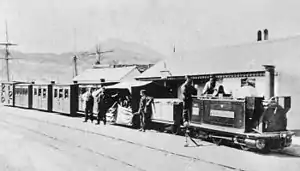 | 1 | The Princess (later Princess) | 1863 | Static display | ![]() Rebuilt in 1882 with a cast iron weight giving the appearance of a saddle tank. In 1895 she was rebuilt with a saddle tank, cab and given the name Princess. She was reboilered in 1923 and she worked the last train on the original railway in 1943. After preservation, Princess has remained in her 1946 condition, although cosmetically restored in 1963 and 1981, after which she was displayed in Spooner's Bar at Harbour Station. In 2013 she was removed and repainted in a lined red livery and displayed at Paddington Station to celebrate her 150th. anniversary.[3] |