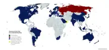 As of October 2023, FATF has 38 countries as full members.[31] However, through several associated regional bodies, the FATF network comprised 187 countries in total, as of 2012.[12] The FATF also works in close co-operation with a number of international and regional organisations.[31] Countries are subjected to evaluation by FATF to see that they are upholding laws and regulations enforced by FATF.