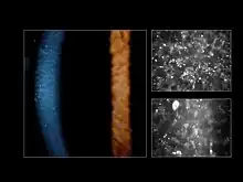 | Appearance of the cornea by slit-lamp biomicroscopy (left image) and by confocal microscopy (right image) (Courtesy Dr. Charles N. McGhee) | |