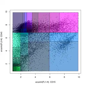 - ↑ Aghaeepour, N.; Nikolic, R.; Hoos, H. H.; Brinkman, R. R. (2011). "Rapid cell population identification in flow cytometry data". Cytometry Part A. 79A (1): 6–13. doi:10.1002/cyto.a.21007. PMC 3137288. PMID 21182178.