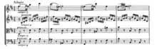 Mozart's Flute Quartet No.1 in D Major, K. 285 is written for flute, violin, viola and cello. It is the first of three quartets written in Mannheim, Germany at the request of Ferdinand De Jean who was introduced to Mozart by Christian Cannabich. Mozart first mentioned his quartets in a letter to his father, Leopold Mozart on December 10, 1777,[1] and the first quartet is dated December 25, 1777.[2]