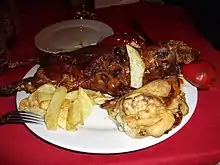 Guinea pigs, or cuy, are commonly eaten in Peru, in the southwestern cities and villages of Colombia, and among some populations in the highlands of Ecuador, mostly in the Andes highlands.[65] Cuyes can be found on the menu of restaurants in Lima and other cities in Peru, as well as in Pasto, Colombia. Guinea pig meat is exported to the United States and European nations.[66][67] In 2004, the New York City Department of Parks and Recreation took legal action to stop vendors serving cuy at an Ecuadorian festival in Flushing Meadows Park.[68] New York State allows the consumption of guinea pigs, but New York City prohibits it. Accusations of cultural persecution have since been leveled.[69]