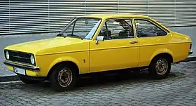 The Mk I was produced by Ford Australia from 1970 to 1975 as a two- or four-door saloon and as a two-door panel van.[17] 1100 cc and 1300 cc engines were offered, as was the 1558 cc twin cam unit.,[17] the last only in the Escort Twin Cam model, which was renamed the Escort GT 1600 in late 1971.[18] Some 67,146 examples of the Mk I were built in Australia,[17] with local sourcing bringing the Australian content of the vehicles to 85 per cent. In 1975 Ford Australia imported 25 MK1 RS2000 Escorts from England for sale in the local market.[19]