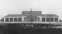 The Fort Covington Border Inspection Station in Fort Covington, New York, is one of seven existing border inspection stations built between 1931 and 1934 along the Canada–US border.[4] Colonial Revival in style, the building was designed by the Office of the Supervising Architect under Louis A. Simon, and constructed in 1933 during the tenure of William H. Woodin, Secretary of the Treasury, Lawrence W. Robert, Jr. Assistant and James A. Wetmore Acting Supervising Architect. Border stations were constructed by the federal government in several New England states along the border with Canada during the 1930s and several common plans and elevations can be discerned among the remaining stations. Fort Covington shares with the others a residential scale, a Neo-colonial style, and an organization to accommodate functions of both customs and immigration services.[3]