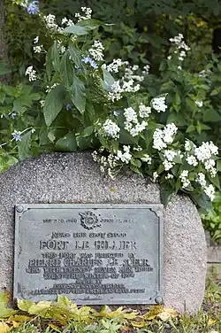 The garrison, which originally held about 30 men, was built beginning in the autumn of 1700 under the direction of Pierre-Charles Le Sueur, a French trader and explorer interested in mining a blue clay that he thought was copper ore.[1] It was named in honor of a metallurgical assayer, Rémy-François L'Huillier.[2]