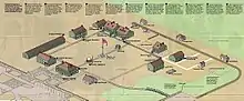 Surviving structures include four officers' barracks, one dragoon's barracks, two infantry barracks, a hospital, guardhouse, dragoon stables, ordnance and post headquarters, quartermaster stables, bake shop, flagpole, and magazine.[7]: 5–6 Another feature of the park is 5 acres (2.0 ha) of tallgrass prairie restored as part of an ecology-restoration project.[1]