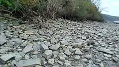 ![]() The beach is covered in fossil-rich limestone and mudstone blocks. | |