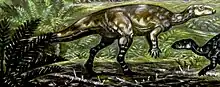 Fostoria (named after Robert Foster who discovered the type locality and bones; the specific name dhimbangunmal means "sheep yard" in the languages of the Yuwaalaraay, Yuwaalayaay, and Gamilaraay peoples of Australia) is a genus of iguanodontian ornithopod dinosaur from the Griman Creek Formation of New South Wales, Australia. The type and only species, Fostoria dhimbangunmal was described in 2019.[1]