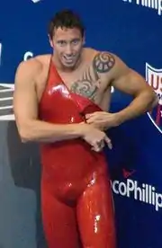 Frédérick Bousquet (French pronunciation: [fʁe.de.ʁik bu.skɛ], born 8 April 1981 in Perpignan) is a retired freestyle and butterfly swimmer from France. He was the holder of the world record in the 50 m freestyle in a time of 20.94 in long course, set on 26 April 2009 at the final of the French Championships. Since the record was swum in a banned, performance-enhancing suit it remained in limbo whether the record stood until FINA approved it in July following a modification of his suit.[1] He is the first swimmer to go under the 21-second mark in this distance. He previously held the record in the 50 m short course in a time of 21.10, set in 2004 at the Men's NCAA Division One Swimming and Diving Championships, for over two years. At the 2009 World Championships in Rome Bousquet competed in the 50 and 100 free, capturing a silver in the 50 and bronze in the 100. Bousquet did not qualify for the 2012 Olympics but his ex-partner Laure Manaudou and his brother-in-law Florent Manaudou did.