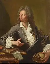 Other notable works include the "Meeting of Musicians", which was a gift to Louis XIV. It was long believed to be a portrayal of Jean-Baptiste Lully and Philippe Quinault, but the musicians pictured were actually friends of the Puget family.[1] He also did at least one, and possibly two portraits of his father, c.1692. All of these are in the Louvre. Several works that were originally attributed to his father have since been identified as his.