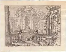 He published a treatise entitled Views and Perspectives of Ruins, Fountains and Buildings of Italy, embellished with twelve copper plates.[4] Two copies of this treatise are kept at the Repossi Art Gallery[5] in Chiari, in the province of Brescia, while four others are in the British Museum,[6] London.