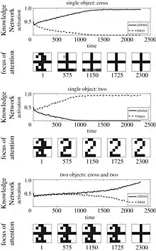 Active inference has been used to address a range of issues in cognitive neuroscience, brain function and neuropsychiatry, including action observation,[55] mirror neurons,[56] saccades and visual search,[57][58] eye movements,[59] sleep,[60] illusions,[61] attention,[44] action selection,[52] consciousness,[62][63] hysteria[64] and psychosis.[65] Explanations of action in active inference often depend on the idea that the brain has 'stubborn predictions' that it cannot update, leading to actions that cause these predictions to come true.[66]