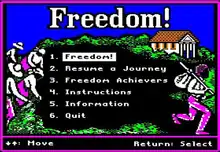 Freedom! is a 1993 educational computer game developed and published by the Minnesota Educational Computing Consortium (MECC). Based on similar gameplay from MECC's earlier The Oregon Trail, the player assumes the role of a runaway slave in the antebellum period of American history who is trying to reach the North through the Underground Railroad. The game was developed with help of an African-American consultant who guided MECC on appropriate graphics and dialect that represented the era. It is recognized as one of the first video games dealing with the topic of slavery.[1]