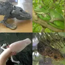 - List of amphibians for lists organized by biological class, order and suborder