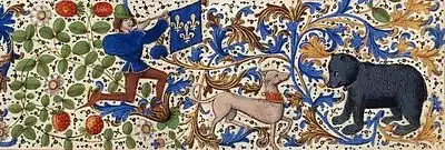 The Froissart of Louis of Gruuthuse (BnF Fr 2643–6) is a heavily illustrated deluxe illuminated manuscript in four volumes, containing a French text of Froissart's Chronicles, written and illuminated in the first half of the 1470s in Bruges, Flanders, in modern Belgium. The text of Froissart's Chronicles is preserved in more than 150 manuscript copies. This is one of the most lavishly illuminated examples, commissioned by Louis of Gruuthuse, a Flemish nobleman and bibliophile. Several leading Flemish illuminators worked on the miniatures.