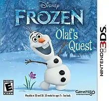 Frozen: Olaf's Quest is a platform video game developed by 1st Playable Productions and published by GameMill Entertainment. It was first released for Nintendo DS and Nintendo 3DS in North America on November 12, 2013, in Europe on December 6, in Australia on January 18, 2014, and in Japan on December 3, 2015. The game is based on the 2013 animated film Frozen by Disney, and follows snowman Olaf. It is the last DS game to have ever released in Australia.