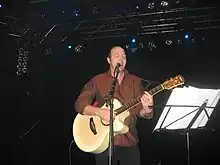 He sings about politics, society, sexuality, religion, and many other topics, usually humorously. He accompanies his songs with guitar, sometimes with harmonica.