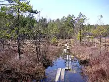 The narrow rift valleys running across the area are filled with either mud, which made them suitable for agriculture, or bogs. Notwithstanding the many traces of an old agricultural landscape dating back to the 17th century, large parts of the forest were felled more recently which makes most of the forest young. Several remains of charcoal stacks and windmills reminds of the three historical homesteads in the area where charcoal was being produced.[1]