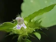 Galeopsis bifida is an annual plant native to Europe and Asia but now found in Canada and the northeastern, midwestern parts of the United States. It has many common names such as bifid hemp-nettle,[1] split-lip hemp-nettle, common hemp-nettle,[1] and large-flowered hemp-nettle.[1] The genus name means weasel-like, referring to the corolla of the flower. It is often confused with other species of Lamiaceae such as Mentha arvensis, Dracocephalum parviflorum and Stachys pilosa.[2]