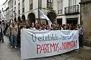 The Galician Student League has clear ideological position and rejects apoliticism. The organization openly defines itself as socialist, "independentist" and feminist[9] and participates in acts of non-student character, as nationalist, language, labor and feminist protests.