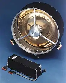 About a year after Galileo the twin instrument[5] was selected for the out-of-ecliptic Ulysses mission. Ulysses was a spinning spacecraft with the dust detector mounted at 85° to the spin axis. Launch of Ulysses was in 1990 and the spacecraft went on a direct trajectory to Jupiter which it reached in 1992 for a swing-by maneuver which put the spacecraft on a heliocentric orbit of 80 degrees inclination. This orbit had a period of 6.2 years and a perihelion of 1.25 AU and an aphelion of 5.4 AU. Ulysses completed 2.5 orbits until the mission was ended. The Ulysses dust detector operated during the whole mission.
