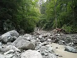 The Galina originates near the northeast of the Galinakopf summit,[1] near the Rossboden, 2,060 metres (6,760 ft) above sea level. With a length of about 5.80 km (3.60 mi) it is one of the shortest rivers of Vorarlberg. It flows into the Ill between Frastanz and Feldkirch.[2]