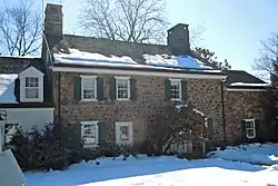 Constructed by Isaac and Amos Garrett near Ridley Creek circa 1802. The Garretts were members of a prominent local Quaker family, who in 1684 had originally purchase a large 1,000 acre tract of land from John Love, who had first purchased the property from William Penn.