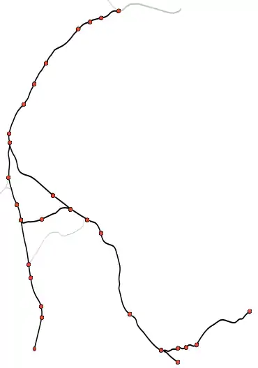 Diagram of the railway c. 1850 (stations with ✱ are presently open) | ||||||||||||||