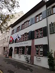 Gasthof zum Goldenen Sternen is the oldest inn in Basel, Switzerland founded in 1349. It is a part of the Swiss history, because in its rooms on 13 July 1501, the ten messengers of the Federal States were received by the Baslers for a welcome drink. [1] In 1964, for a road widening, it was relocated from Aeschenvorstadt. The building was dismantled brick by brick, and in 1973โ74 it was rebuilt at St. Alban-Rheinweg to its original shape. [2]