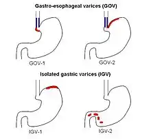 - 1 2 3 4 Wani Z, Bhat R, Bhadoria A, Maiwall R, Choudhury A (December 2015). "Gastric varices: Classification, endoscopic and ultrasonographic management". Journal of Research in Medical Sciences. 20 (12): 1200–1207. doi:10.4103/1735-1995.172990. PMC 4766829. PMID 26958057.