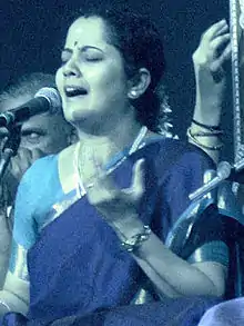 The Hindu wrote that her singing shows "modesty and sincerity", and praised her for choosing rare kritis in a 2016 concert.[5] In a 2015 concert, The Hindu wrote that she "comprehends the strong link between the devoutness of classical music and its manifestation in the form of kritis."[6] They have also called her voice "melodious."[7]