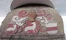 ![]() Painting of Georg Wolf kneeling before the cross (detail of his grave) | |