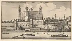 At a prepared scaffold the King's lord knighted the Sheriff's lord, giving him a rich gown and dubbing him thrice on the shoulder with his sword. They drank to one another, and the cofferer cast gold and silver around as they went on through Cheap, the two lords of misrule turning up Wood Street to dine with the Mayor, and thence to the Sheriff's house, to the Old Jewry and the Treasurer's house at London Wall, stopping for drinking and banqueting. So by the evening they came through Bishopsgate, Leadenhall, Fenchurch Street and Mark Lane: the Sheriff's lord accompanied the King's lord by torchlight down to Tower Wharf, where the King's lord went into his pinnace with a great shot of guns, and the Sheriff's lord took his leave of him.[16]