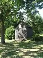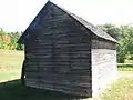 - Two-story 18 feet (5.5 m) by 20 feet (6.1 m) structure with wooden shingles and board-and-batten siding.