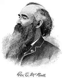 McNeill was the founder of the Working Men's Institute in Boston, and worked with abolitionist Wendell Phillips and Massachusetts Governor William Claflin to establish the Massachusetts Bureau of Statistics of Labor, the first labor bureau in the United States.[2] Upon that body's formation he was named deputy chief by Governor Claflin.[2]