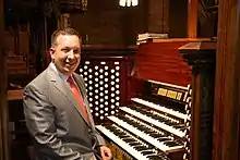 Krahforst's repertoire of organ music includes all the organ works of Bach,[7] Buxtehude, Mendelssohn, Schumann, Liszt, Franck, Duruflé, Brahms Zachow, Couperin, the 8 organ sonatas and individual works by Guilmant, the 10 organ symphonies by Widor,[8] all organ works by Vierne[9] a large part of the organ works of Dupré, Langlais, Rheinberger and Reger as well as a large fund of standard works, little-known ones and works of the so-called early music and Romanticism alongside a large selection of English, American and Canadian organ literature.