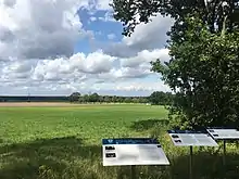 Admiral von Friedeburg went on to sign the German Instrument of Surrender preparatory to the ending of World War II in Europe on 7 May at Reims in France and signed again on 8 May with the Supreme High Command of the Red Army, French and US representatives in Berlin. Both Admiral von Friedeburg and General Kinzel committed suicide in the weeks following the surrender; von Friedeburg on 23 May 1945, and Kinzel on 25 June 1945.[8][9] After the war a monument was erected by the British on what they now called Victory Hill. The monument was dismantled in 1958 and rebuilt at the Royal Military Academy Sandhurst. Today the spot lies in an out-of-bounds military area and is not accessible to the public. In 1995 another monument was erected on the edge of the Timeloberg, outside the restricted area.[3] The last survivor of the negotiations was one of Montgomery's interpreters Derek Knee[10] who died aged 91 in 2014.[11]