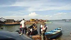 Fishermen set off from the site and return with fish to sell. The fish mostly caught in the waters near the site include: Nile perch, Tilapia, Lung fish and Cat fish. Fishing is mostly done in the middle of the lake, a little distance from the site. It is tilapia that is fished near the shore. Fishing has changed at the site over the years, from using small canoes to using motorized boats. The mode of transportation of fish has also evolved. The fish are moved in containers with ice, unlike before when they were simply dropped inside a boat and then delivered.[2]