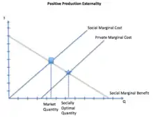Positive externalities can be either positive production externalities or positive consumption externalities. Positive externalities benefit third-parties by increasing the well-being of others without receiving compensation in return. This leads to underproduction of the good, with an associated deadweight loss.[15]