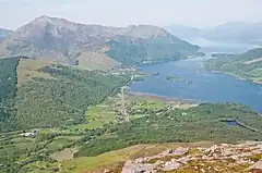 Glencoe or Glencoe Village (Gaelic: A’ Chàrnaich[2]) is the main settlement in Glen Coe in the Lochaber area of the Scottish Highlands. It lies at the north-west end of the glen, on the southern bank of the River Coe where it enters Loch Leven (a salt-water loch off Loch Linnhe).