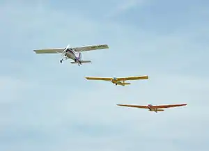 A glider or sailplane is a type of glider aircraft used in the leisure activity and sport of gliding (also called soaring).[1][2] This unpowered aircraft can use naturally occurring currents of rising air in the atmosphere to gain altitude. Sailplanes are aerodynamically streamlined and so can fly a significant distance forward for a small decrease in altitude.