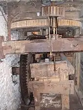 This glossary of mill machinery covers the major pieces of machinery to be found in windmills, watermills and horse mills. It does not cover machinery found in modern factories.[1][2]