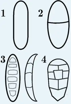 - A delimited space on a surface, separated from others by fissures or cracks.[33]
