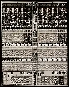 Picture banzuke with paintings of top division sekitori, gyōji and sometimes yobidashi.