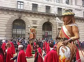 Images of Gog and Magog (depicted as giants) are carried by Lord Mayors of the City of London in a traditional procession in the Lord Mayor's Show each year on the second Saturday of November.