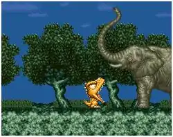 Enemies include monkeys, warthogs, polar bears, rhinoceroses, ibex, and bobcats. Sharks and orcas have the special ability to swallow Gon whole, but he can break free in most instances. There are Mode 7 chase sequences between levels, in which Gon must avoid obstacles while catching up to a monkey. A 4-digit password is seen at the end of each level.