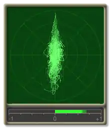 A goniometer is often included in analog audio equipment to display a Lissajous figure which shows the amount of stereo (that is, phase differences) in a dual-channel signal.[1] It allows the sound technician to adjust for optimal stereo and determine the makeup of errors such as an inverted signal. Many goniometers also provide a VU or PPM as a secondary function.[2] A goniometer adapted for surround metering is called a 'jellyfish display'. This term was coined by DK-Technologies A/S from Denmark.
